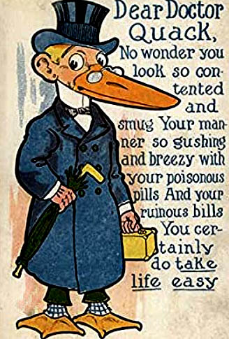 mean one using false cures or knowledge. Female quacks were known as “petticoat